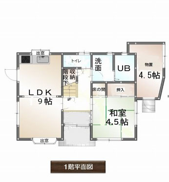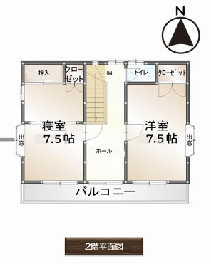 | 間取内容 | LDK9畳 1階 和室4.5畳 1階 洋室7.5畳 2階 洋室7.5畳 2階 その他4.5畳 1階 | ||