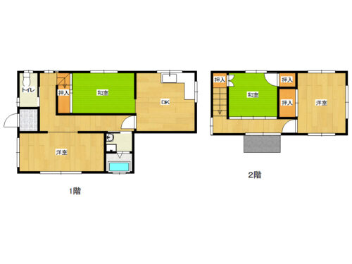 | 間取内容 | DK7畳 1階 洋室6畳 1階 和室6畳 1階 和室6畳 2階 洋室4.5畳 2階 | ||